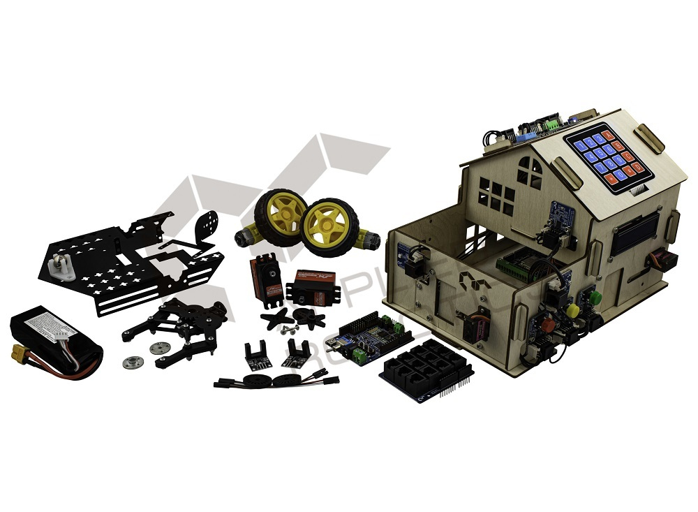 Набор предназначен для комплексного изучения принципов применения технологий связи и технологий "Интернет вещей" в различных отраслях промышленности. Образовательный набор позволяет разрабатывать учебную модель мобильного робота с модулем технического зрения, предназначенную для изучения основ технологий распределенного и группового управления в робототехнике, а также модель здания с интегрированной системой управления для изучения систем автоматизации зданий и применения технологий умного дома на практике.
