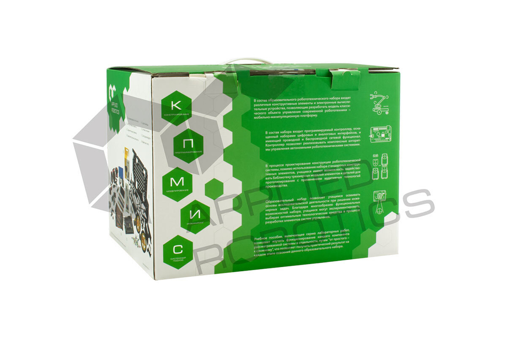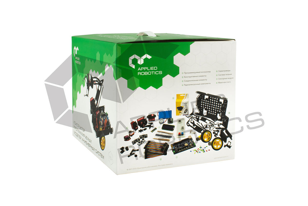 В состав комплекта входит набор электронных компонентов для изучения основ электроники и схемотехники, комплект приводов и датчиков различного типа для разработки робототехнических комплексов, а так же модуль технического зрения для распознавания заранее заданных графических объектов. Комплектующие и устройства набора обладают конструктивной, электрической, аппаратной и программной совместимостью друг с другом.