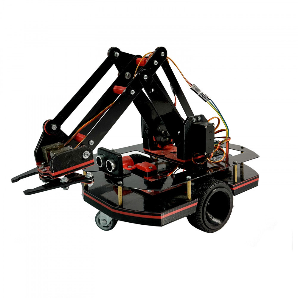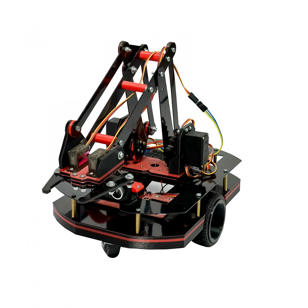 Учебный конструктор для создания автономных подвижных манипуляционных устройств. Дополнительно оснащается датчиками и модулями позволяющими расширить область его применения. Комплектация включает детали для сборки механических и пневматических систем захвата предметов. Может быть укомплектовано модулем технического зрения для реализации возможностей управления роботом в режиме FPV или самостоятельного слежения роботом за предметом.