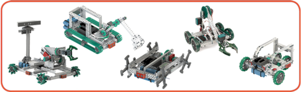 В состав базового робототехнического набора входят: конструктивные элементы, представляющие собой набор металлических деталей, уголков, скоб и т.п.; набор пластиковых элементов механических передач – различные зубчатые колеса, фланцы, поворотные основания и т.п. Все конструктивные элементы механически совместимы друг с другом при помощи стандартных крепежных элементов (винты, гайки, шайбы, заклепки) и позволяют собирать различные статичные и подвижные модели.