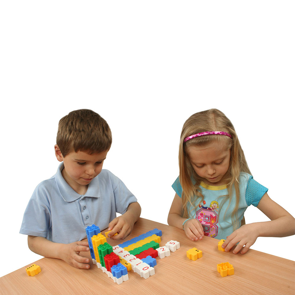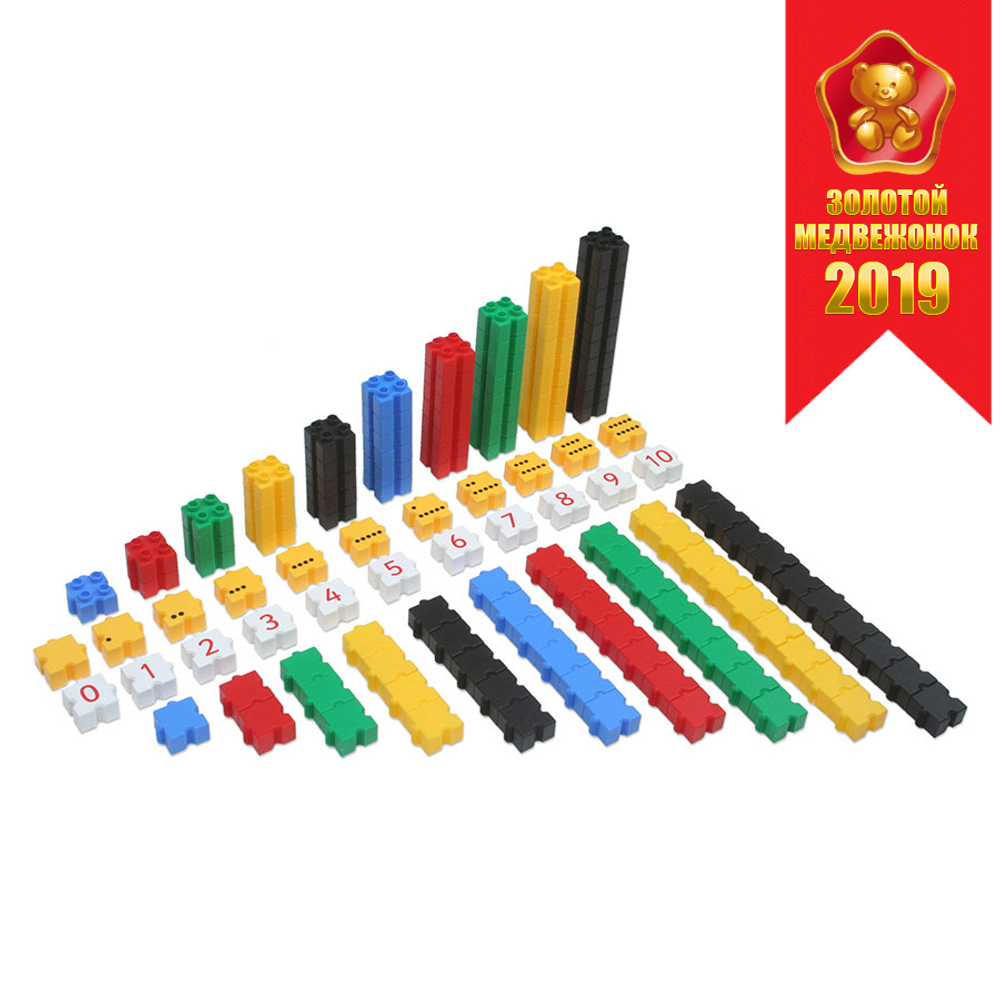На детали конструктора нанесены точки от 1 до 10, цифры от 1 до 10 и математические символы. Карточки-инструкции демонстрируют примеры счета от 1 до 10 на пальчиках, по точкам, а затем с цифрами. Методика обучения наглядно показывает различное представление чисел от 1 до 10 по высоте и длине, а также простое сложение, вычитание, деление и умножение. Конструктор может быть использован для индивидуальной и групповой работы детей в образовательной деятельности и досуговых развивающих занятиях. Знакомство с математикой у детей будет происходить легко и интересно, а знания будут легко усваиваться.