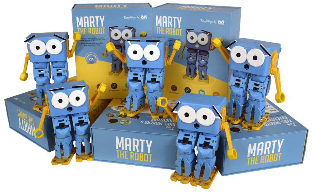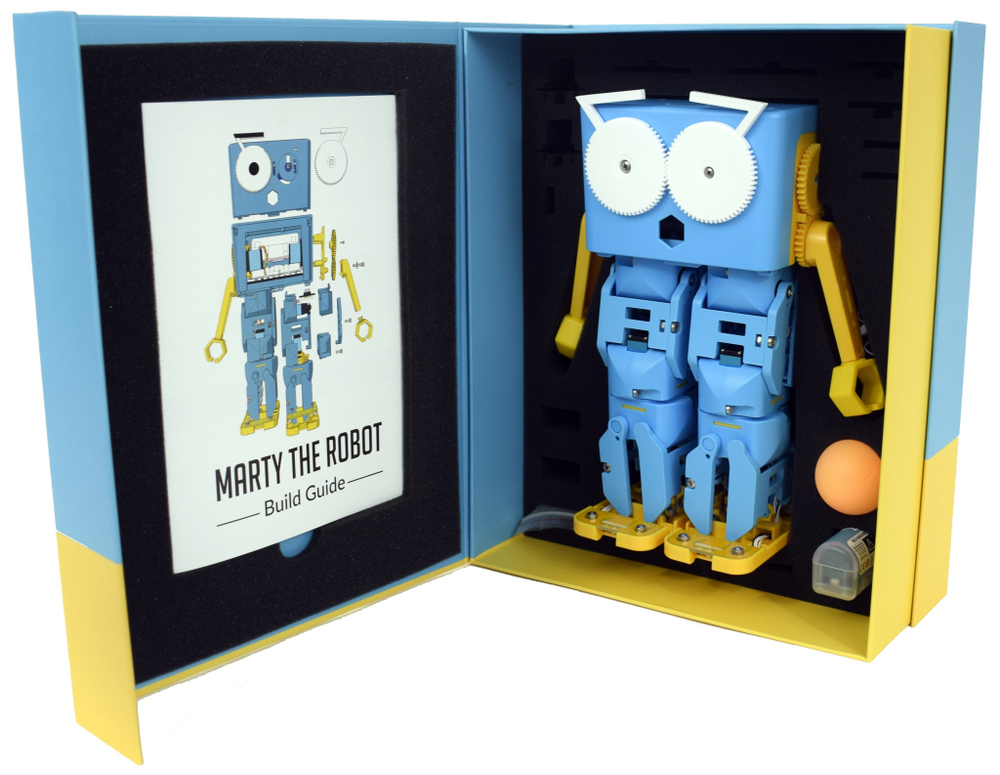 Знакомьтесь – робот Марти. Необычный робот с большими возможностями, способный стать отличным другом для учеников в возрасте 7-14 лет. Полностью программируемый и настраиваемый Марти подходит для игр, творчества, а главное – обучения. С ним весело изучать робототехнику, программирование, электронику, механику или проектировать дополнительные детали при помощи 3D-принтера. Реализуйте свои идеи, как на визуально-ориентированном языке Scratch, так и на высокоуровневых языках программирования, таких как Python, Javascript и C++.