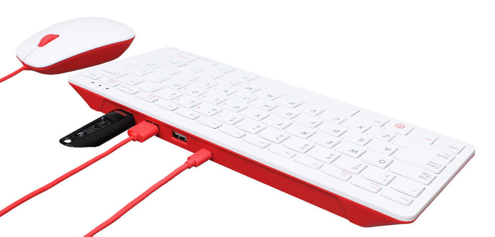 На задней стенке клавиатуры расположен хаб с тремя портами USB 2.0, чтобы подключать дополнительные аксессуары и экономить порты на Raspberry Pi. Например, сюда так и просится оригинальная мышь в одинаковой стилистике с красно-белой расцветкой.