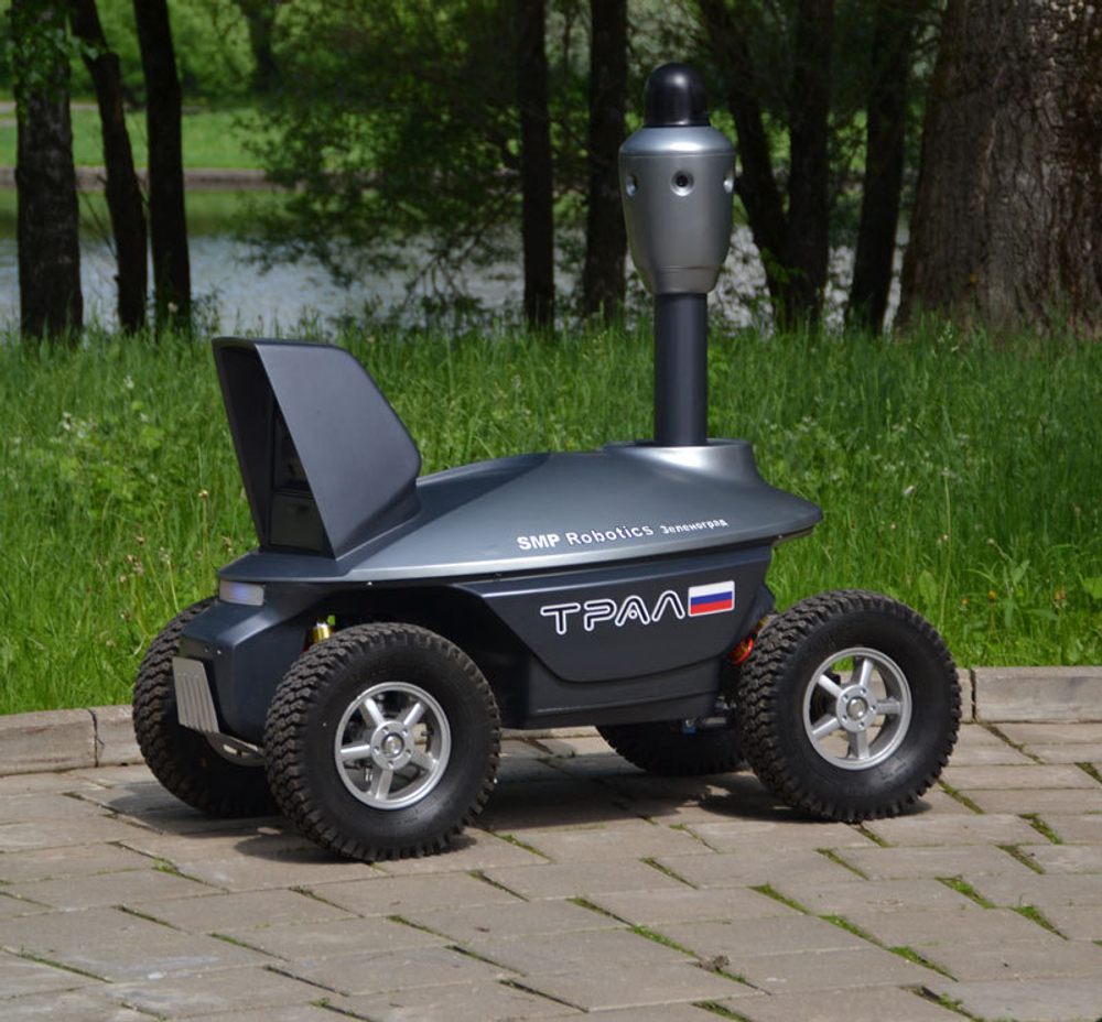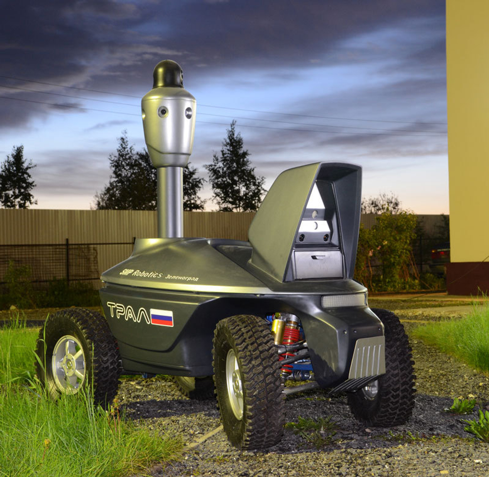 Охранный робот «Трал Патруль 4.0» предназначен для замены патрулирующих охранников на закрытых охраняемых территориях. Колёсный робот осуществляет перемещение по объекту без участия оператора, останавливаясь в заранее заданных, оптимальных для наблюдения, точках маршрута. При этом, если система кругового видеонаблюдения детектирует движение, вычислитель системы видеоанализа наводит в область движения поворотную камеру. Если на детальном изображении поворотной камеры распознаётся фигура человека, робот подаёт сигнал тревоги на пост охраны, и охранник, рассмотрев изображение, принимает решение о дальнейших действиях: сбросить сигнал тревоги, включить сирену или стробоскоп на роботе, или же лично проследовать к месту проникновения и разобраться с нарушителем. Если сигнал тревоги будет сброшен, или в очередной точке наблюдения активность не будет обнаружена, робот автоматически переместится в следующую точку наблюдения. При использовании нескольких роботов на одном объекте, их взаимное перемещение синхронизируется таким образом, чтобы в любой момент времени под видеонаблюдением находилась как можно большая площадь охраняемого объекта.