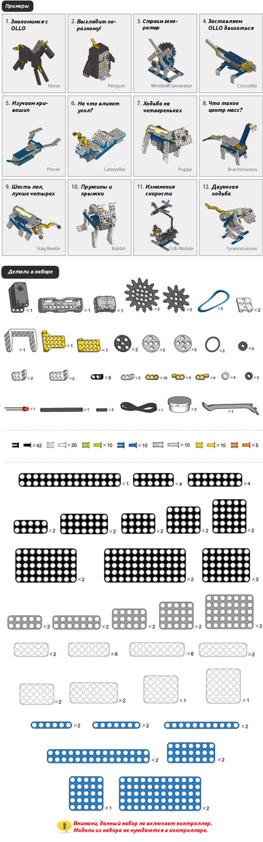 Это лучшее решение для начинающих разработчиков, кто еще ни разу не имел опыта работы с роботами. В комплект входит обучающее пособие с инструкциями по сборке различных моделей и комментариями, разъясняющими основные физические принципы и законы. Robotis OLLO Starter – наилучшее решение для интеграции робототехники в образовательный процесс. Набор предназначен для детей возрастом от 8 лет.