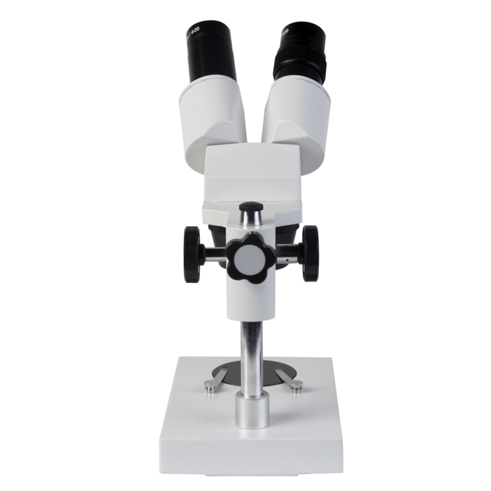 Микроскоп укомплектован объективами 2 и 4 крата, установленными в револьверный механизм, обеспечивающий быструю смену рабочих объективов. С идущими в комплекте окулярами 10x/20 мм микроскоп даёт два увеличения: 20 и 40 крат, поле зрения микроскопа: 10 мм и 5 мм. При необходимости Вы можете приобрести дополнительные окуляры для получения других увеличений и изменения размера поля зрения. Также в продаже имеется окуляр со шкалой для проведения измерений.