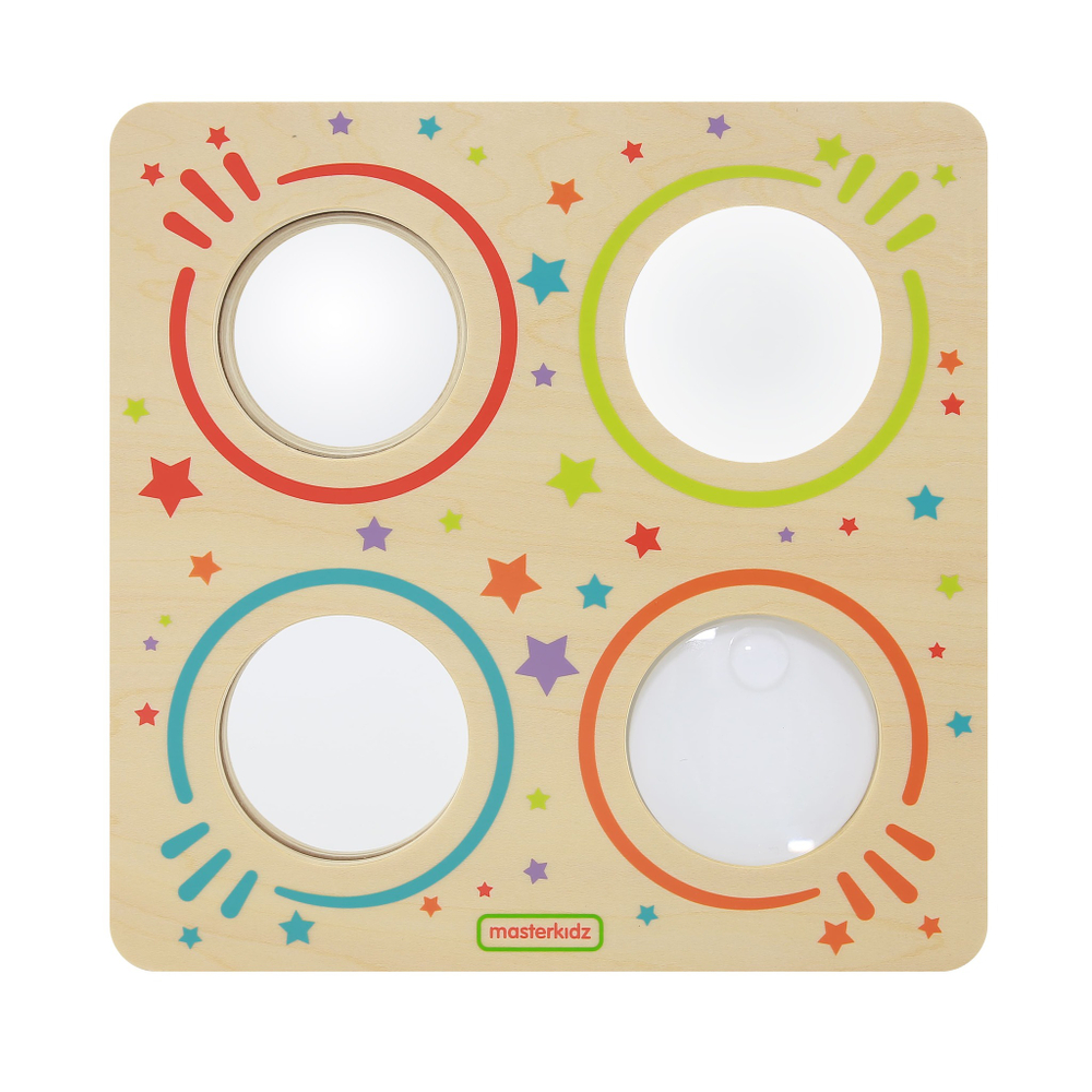 Пособие представляет из себя панель на которой закреплены: зеркало, лупа, вогнутая линза и выпуклая линза. Панель предназначена для развития кругозора, сенсорики; возможно использование при различных играх.
