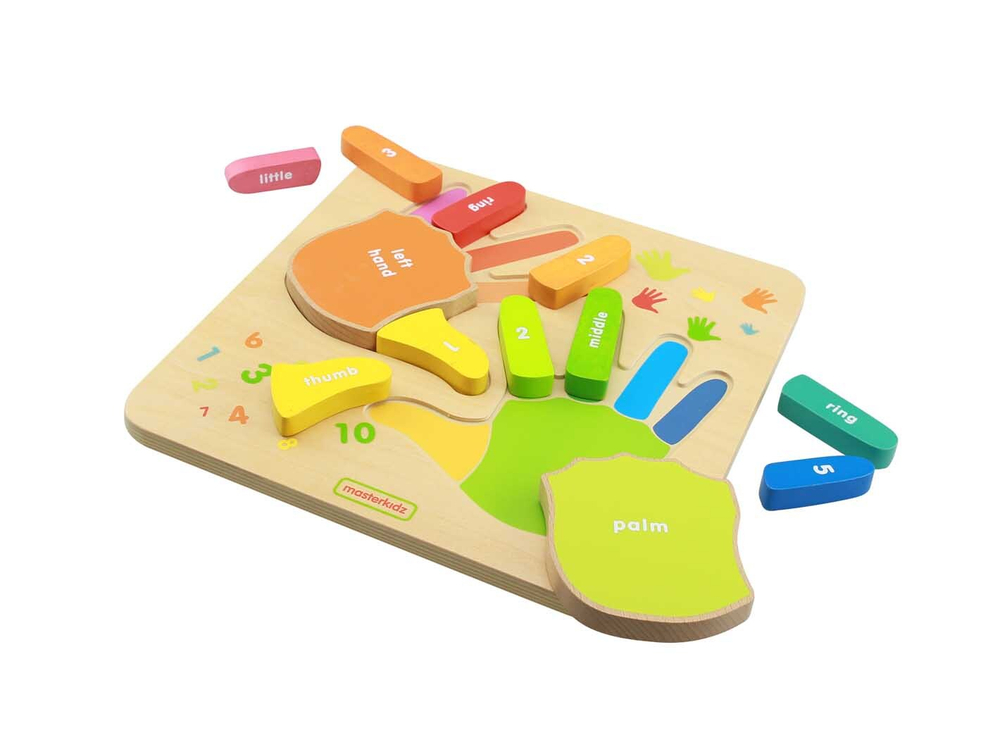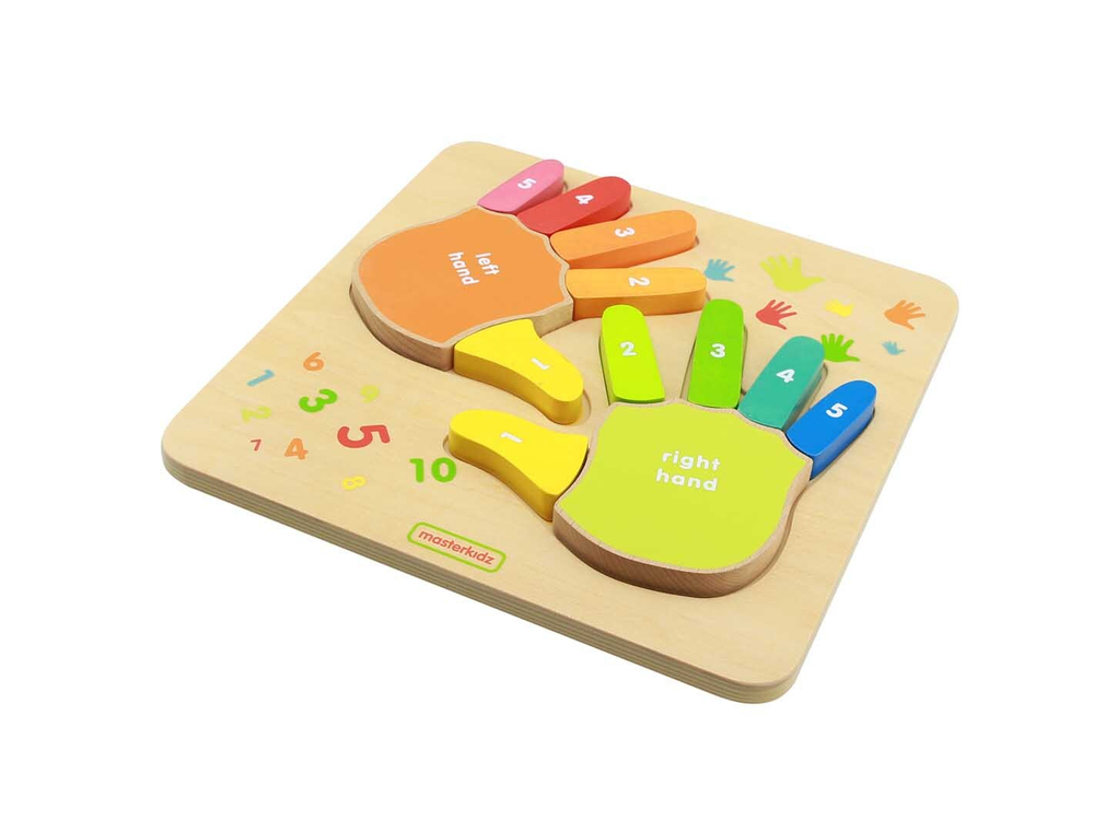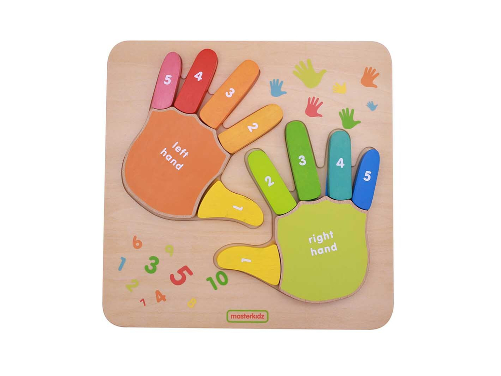 Панель выполнена из березовой фанеры, на лицевой стороне которой представлены кисти рук, каждая из которых подписана: левая и правая, а каждый палец с одной стороны - пронумерован, а с другой стороны - написано его название. Предназначена для обучения счету от 0 до 10, навыкам сложения и вычитания с помощью пальцев рук.