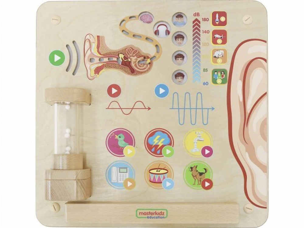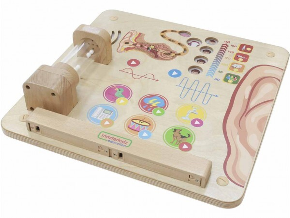 На панели есть прозрачная акриловая трубка, внутри которой пенистые шарики. В зависимости от громкости звука дети наблюдают различные степени вибрации шариков.
