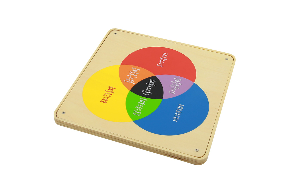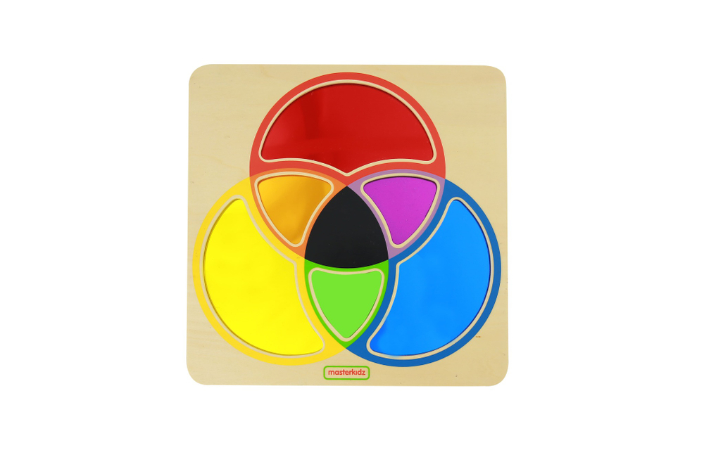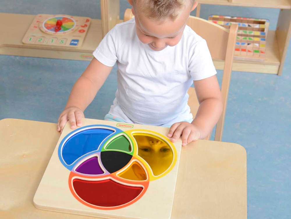 Панель-мозаика с 3-х цветными кругами предназначена для знакомства и изучения цветов, а также наглядно дает представление об эффекте смешивания цветов.