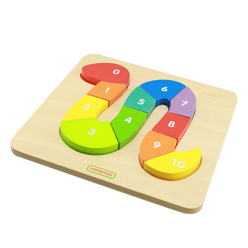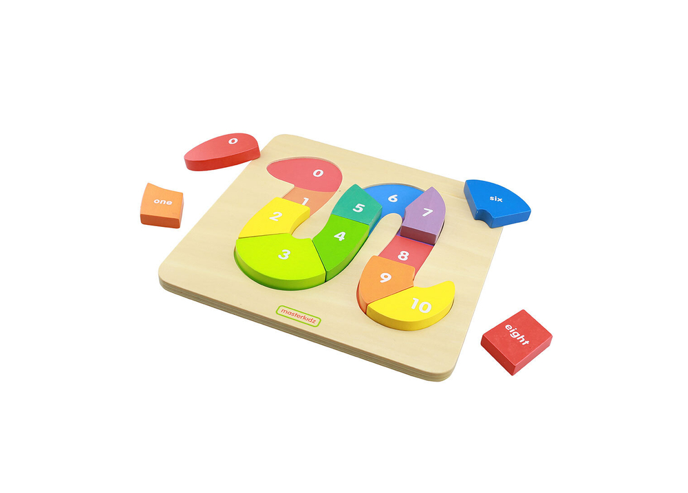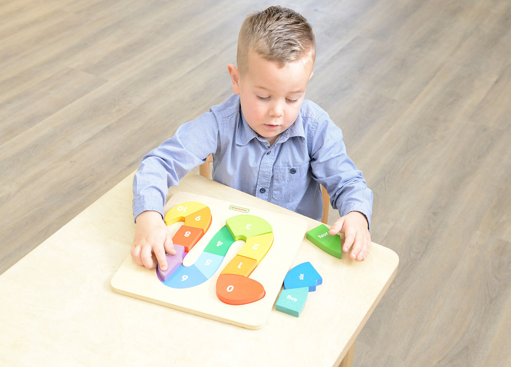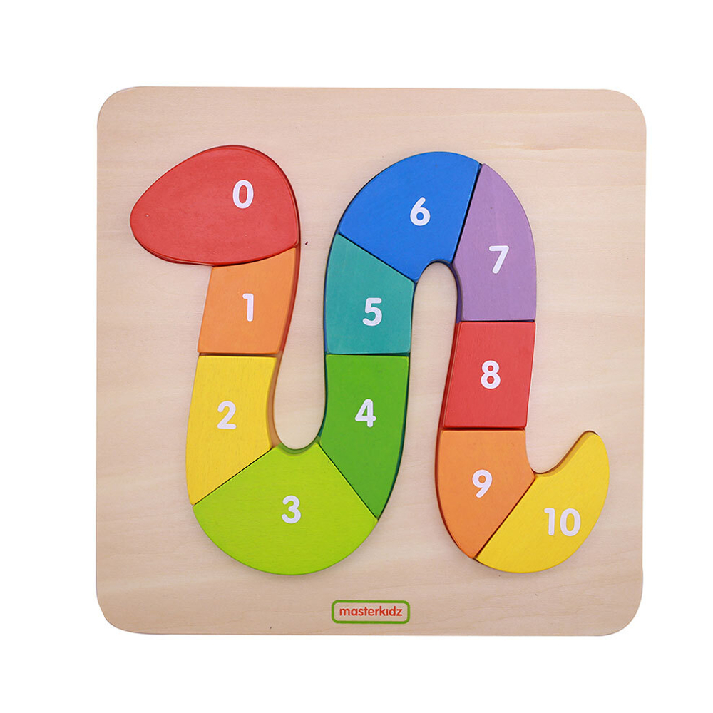 На лицевой стороне панели изображена головоломка в форме змеи, состоящая из из 10 разноцветных блоков, пронумерованных от 1 до 10. Ребенок в правильной последовательности должен расположить части головоломки, чтобы собрать змею. Панель предназначена для обучения счету от 0 до 10 и знакомства с цветами.
