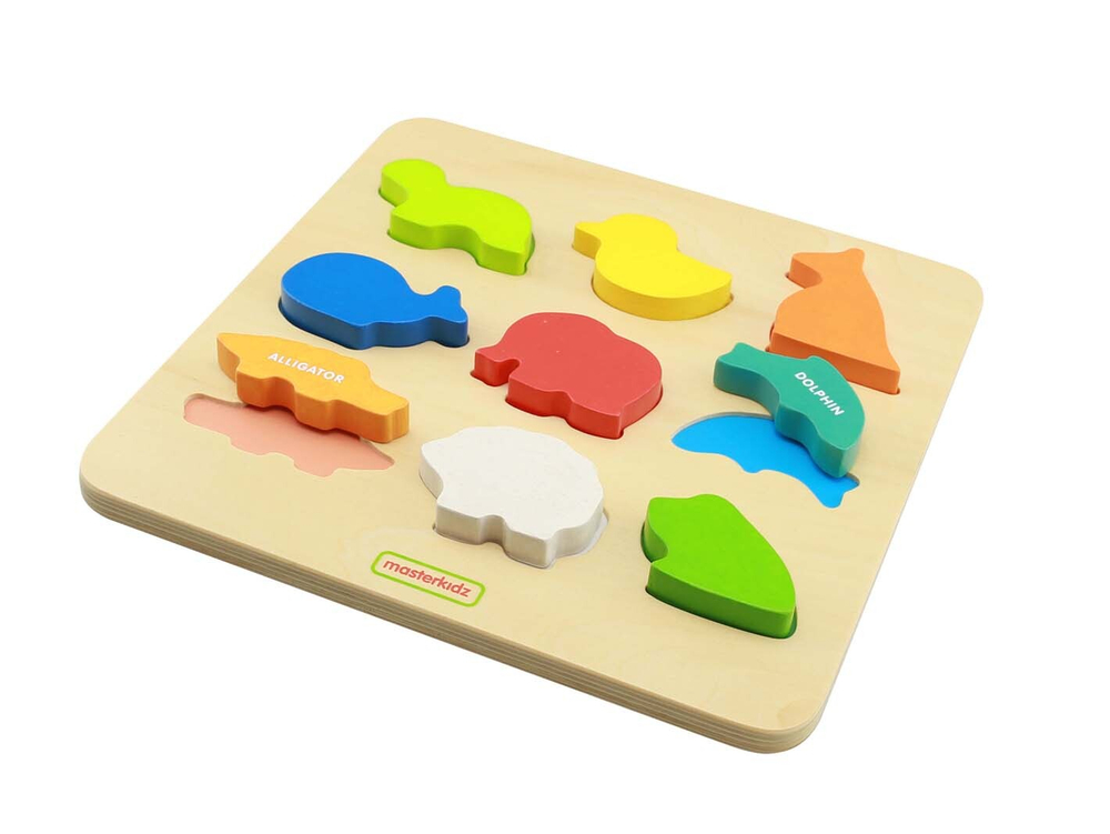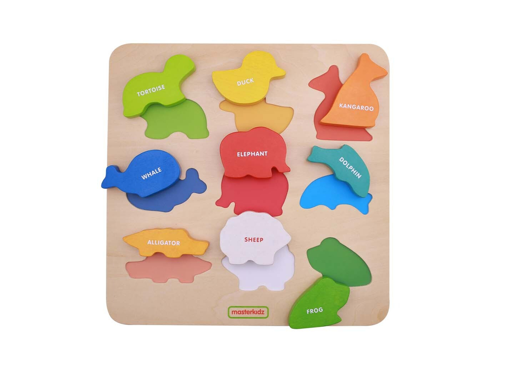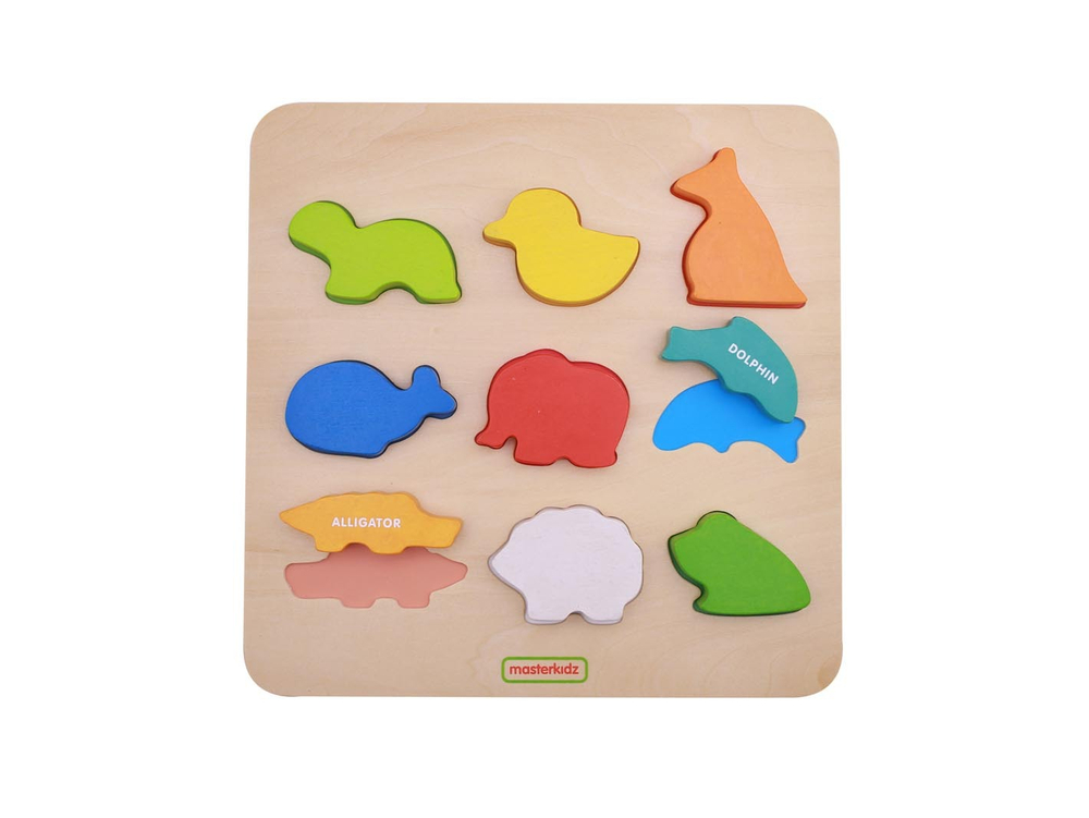 Учебная панель знакомит детей с цветом, видами животных и развивает навыки сортировки (по цвету, форме). 9 видов животных и 9 соответствующих по форме отверстий.