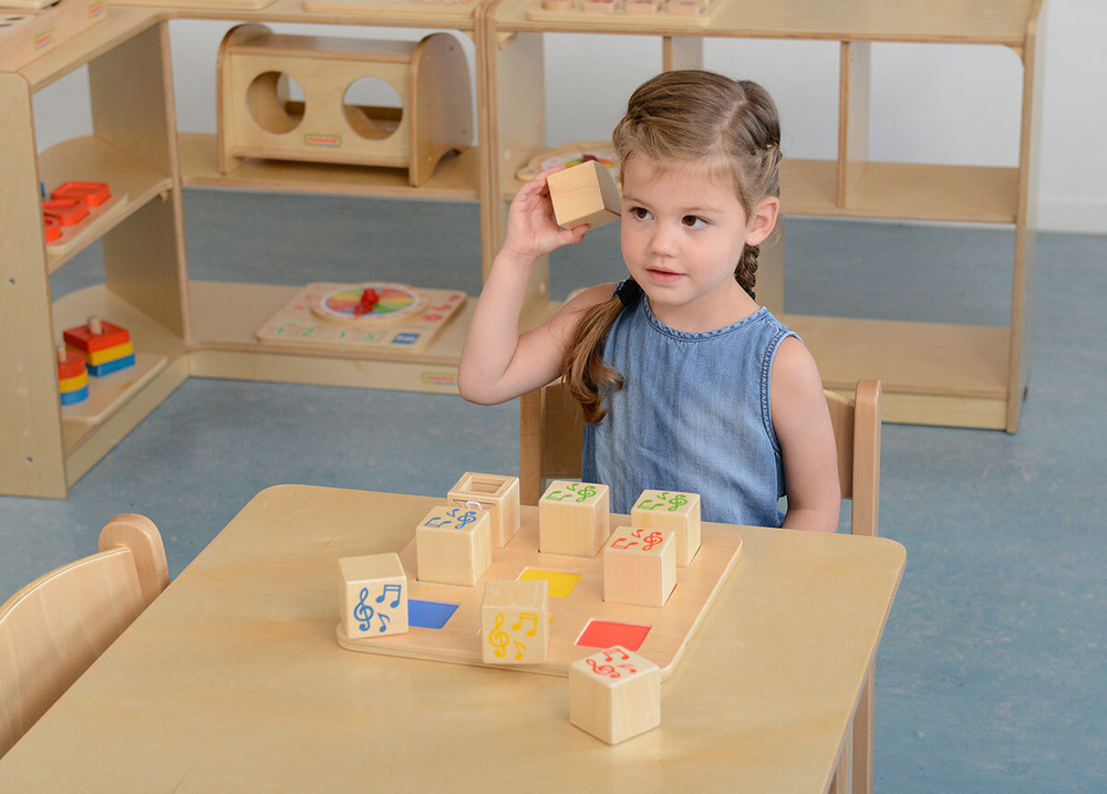 В наборе также есть пустой куб, в который дети могут положить различные предметы и сделать свой собственный шейкер.