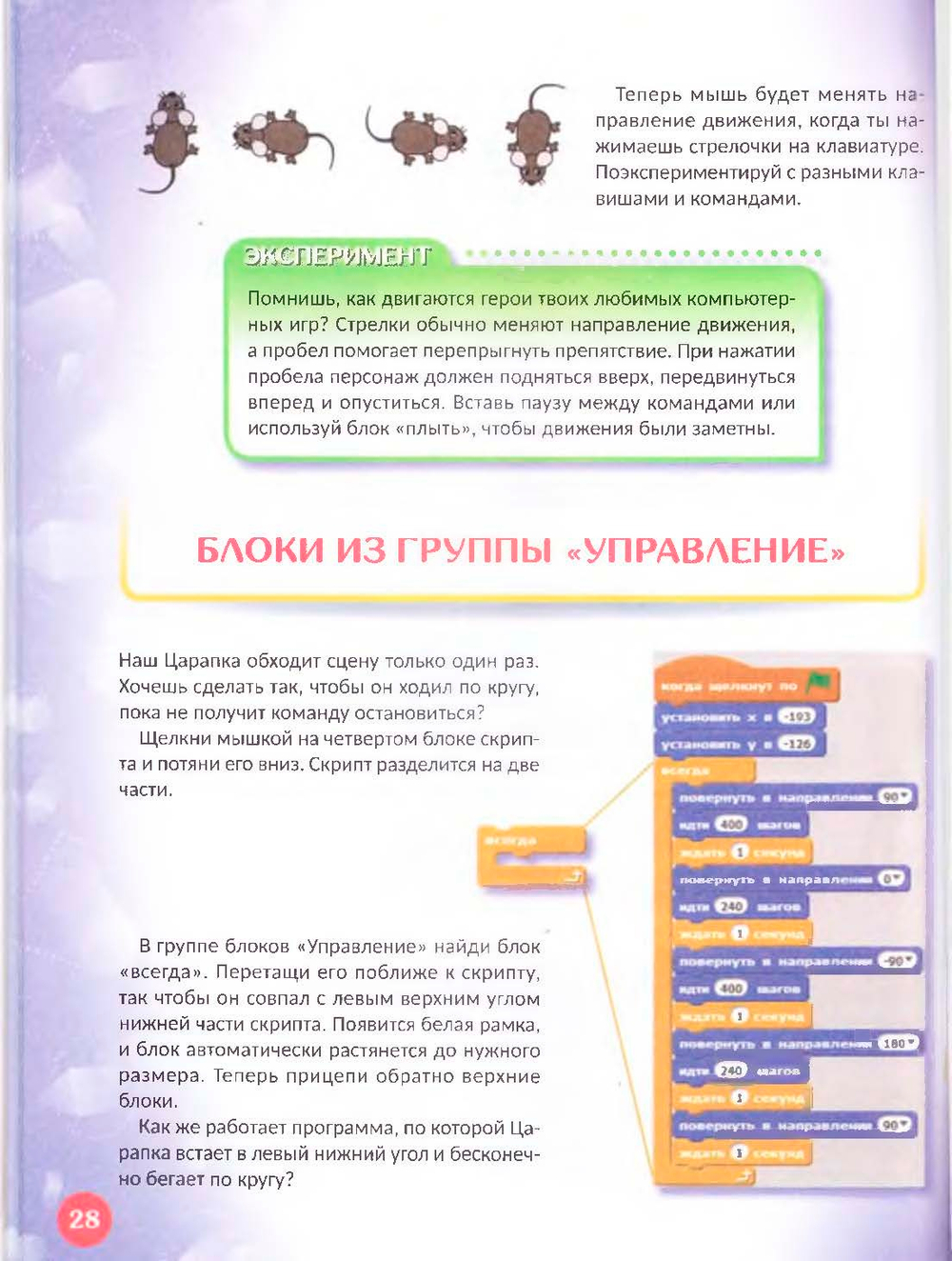 А теперь – самое главное. Ты можешь сам делать такие программы! Придумывать игры со своими героями, рисовать мультфильмы – все, что захочешь. Для этого создали специальную детскую среду программирования Скретч. Все команды в ней нарисованы как цветные значки-блоки, из которых удобно собирать программы. Это похоже на конструктор «Лего». Просто берешь кубики и собираешь сложную программу или среду. Давай вместе отправимся в удивительный мир программирования.