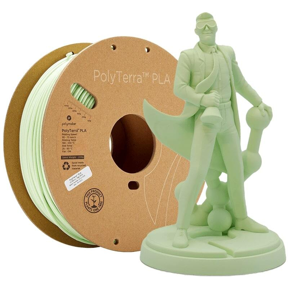В качестве носителя для PolyTerra PLA используется катушка из переработанного картона, этикетки и внешняя упаковка также изготовлены из переработанного материала. Кроме того, из упаковки была удалена вся ненужная бумага, чтобы уменьшить количество отходов, образующихся при изготовлении материала.