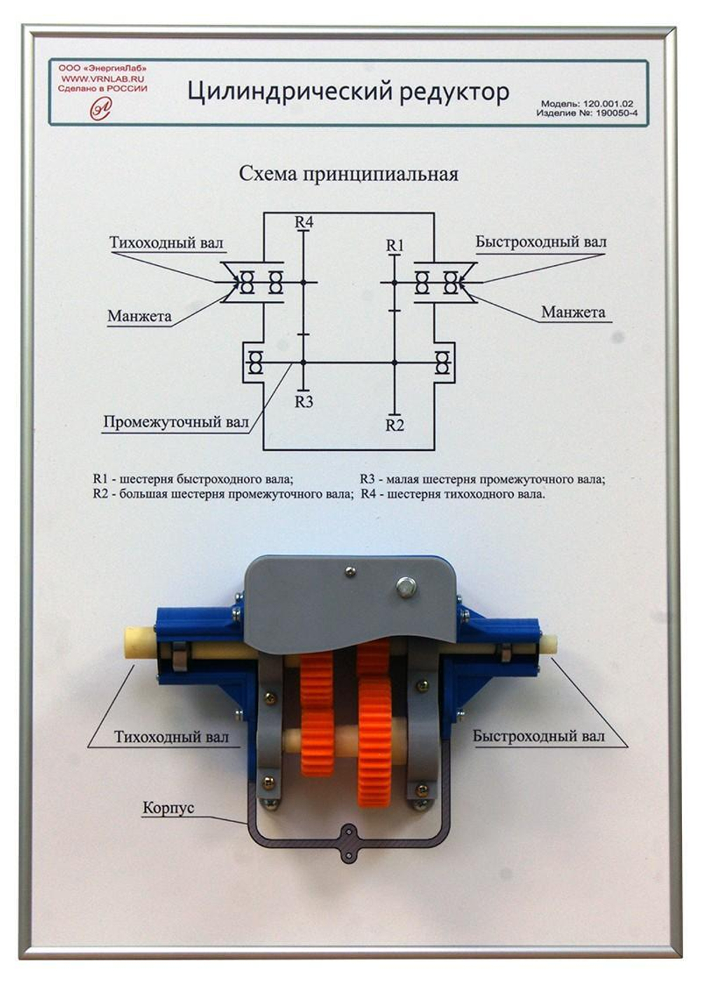 Плакат планшет с демонстрационной моделью «Цилиндрический редуктор» ✅