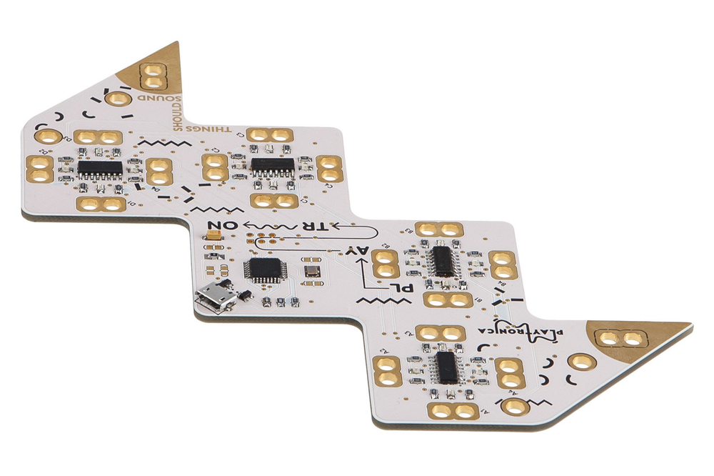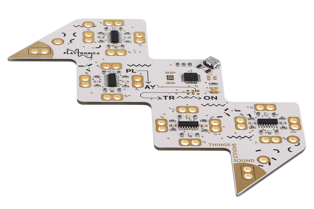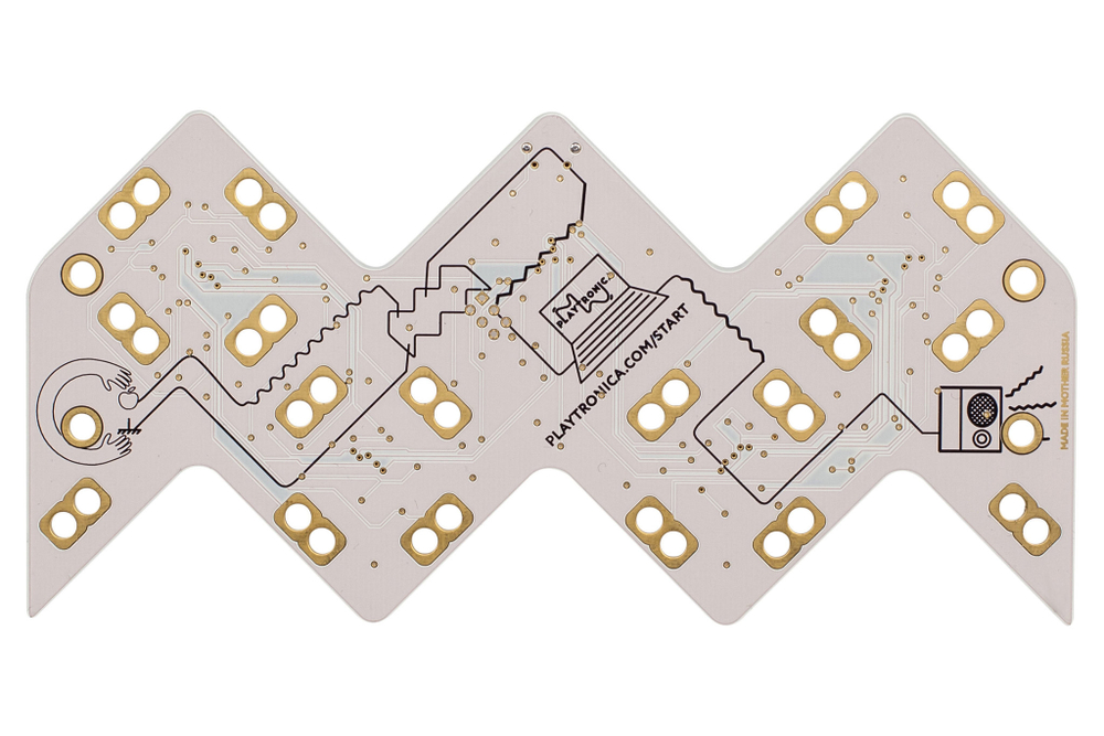 Это электронное устройство превращающее любой предмет в музыкальный инструмент. Для работы подсоедините к плате токопроводящие материалы – воду, металл, овощи или человеческое тело и играйте музыку посредством касания. От 6 лет.