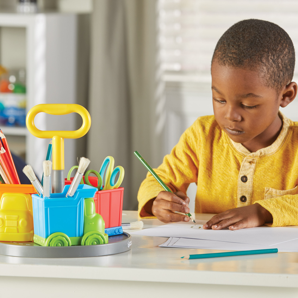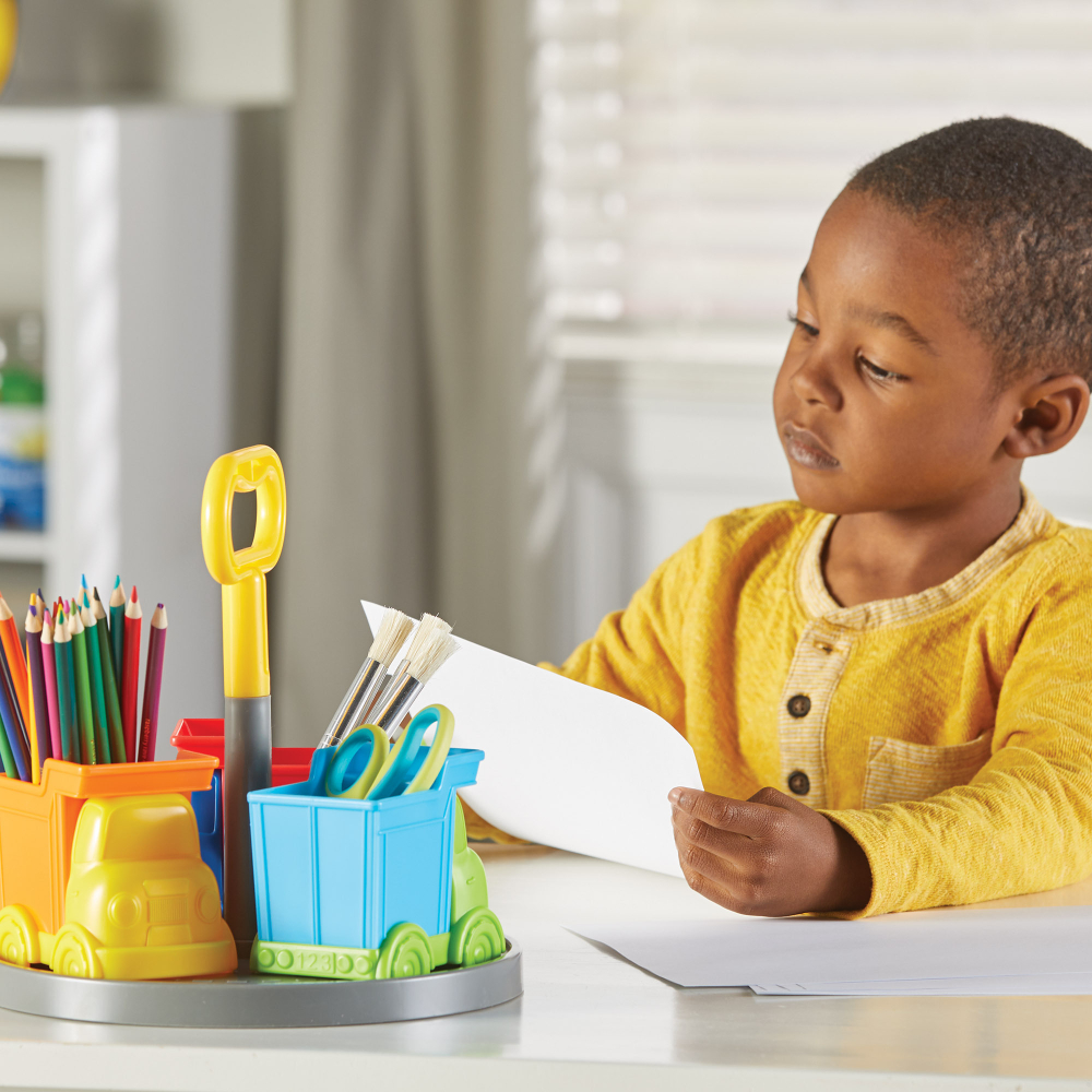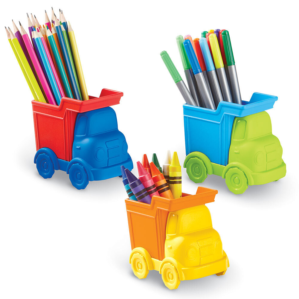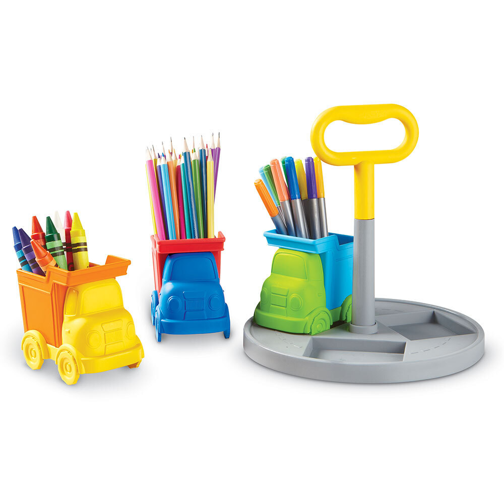 «Грузовики» можно перемещать по рабочему пространству или расположить в одном месте – на специальной подставке с ручкой-переноской.