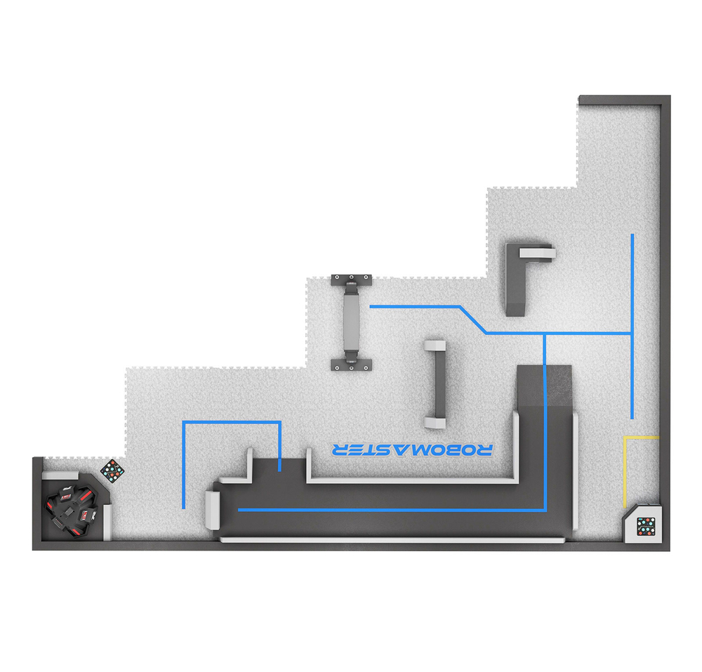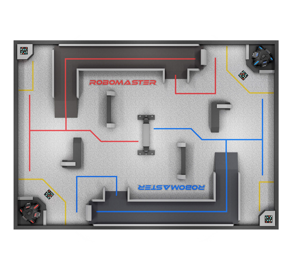 Молодежный турнир RoboMaster - это соревнование по робототехнике, созданное и организованное DJI, направленное на поощрение молодежи развивать свои теоретические инженерные знания и навыки применения искусственного интеллекта. Площадка молодежного турнира разделена на две симметричные зоны Red Team и Blue Team, состоящие из ряда компонентов площадки, включая базы, посадочные площадки, дороги, высокие стены, L-образную местность и остров ресурсов.