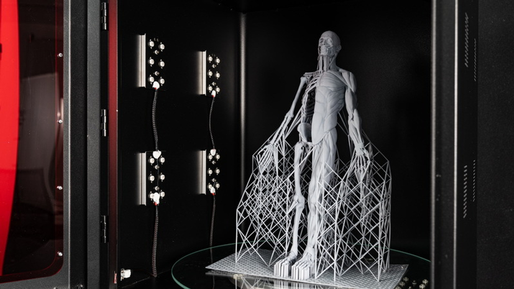 Корпус камеры выполнен из прочного листового металла. Рабочее пространство очень объёмное: 420 мм в диаметре и 450 мм в высоту. Это позволяет поместить внутрь одну крупную модель или целую партию мелких.