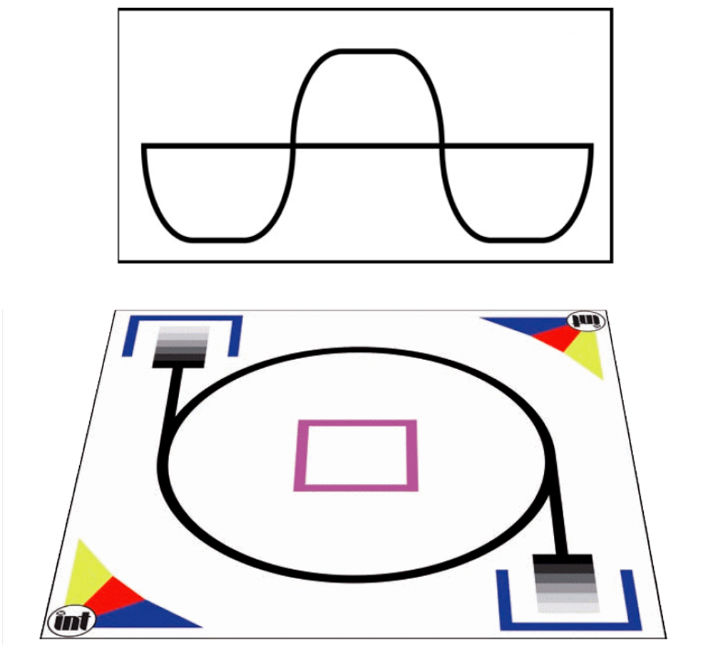 Поле белого цвета размером 2х1 м с изображением линии со сложной траектории.