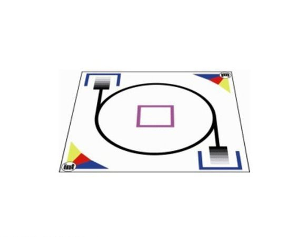 Поле белого цвета размером 1х1 м, на которое нанесен цветной рисунок со сложной конфигурацией. Цвета подобраны таким образом, чтобы их мог распознать датчик цвета LEGO.