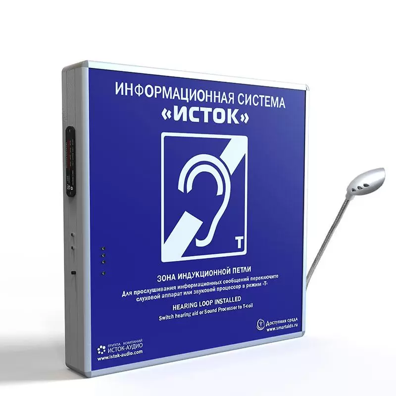 Система информационная для слабослышащих настенная «Исток» М2 со встроенным радиомикрофоном (далее система информационная, устройство) предназначена для передачи аудиоинформации лицам с нарушенной функцией слуха, пользующимся слуховыми аппаратами в режиме индукционной катушки «Т».