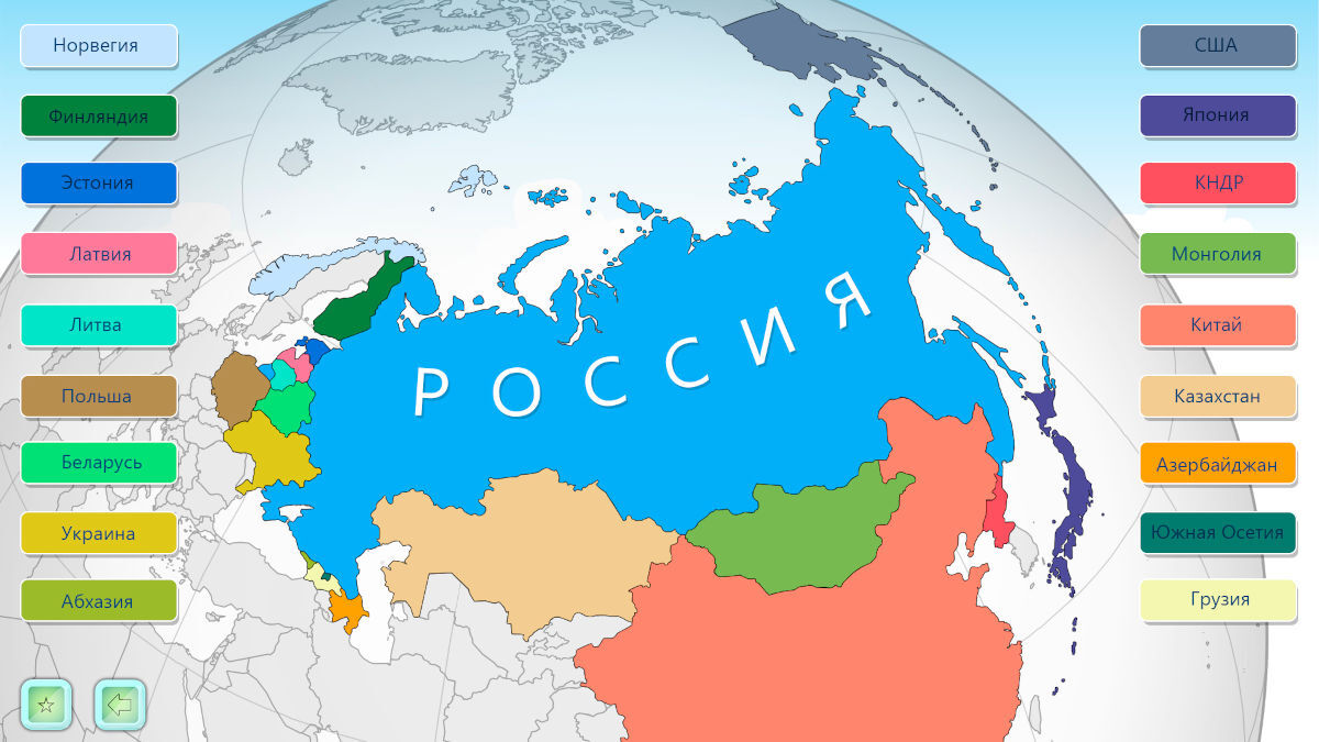 Раздел «Государственность» представлен тремя подразделами: «Государственные символы России», «Государственные праздники России» и «Государственные границы России». В них описаны государственная символика, основные праздники, представлена мировая карта и краткая информация о странах-соседях. Есть возможность прослушать гимн России.