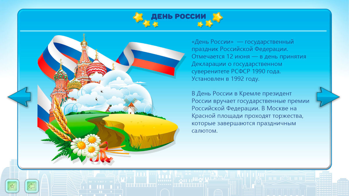 Раздел «Достопримечательности» знакомит детей с замечательными архитектурными и природными формами России, прививая тем самым любовь к прекрасному и желание сохранять природную красоту.