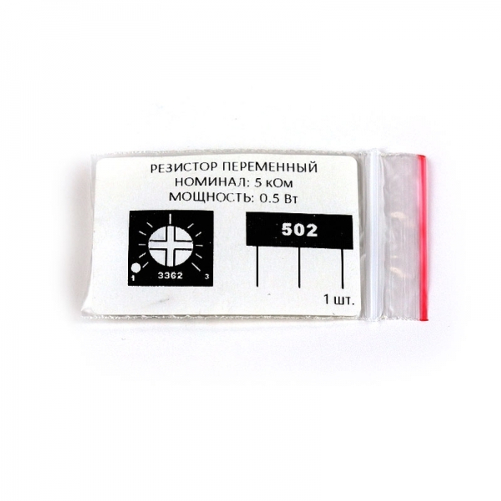 Переменный резистор 5 кОм; 0,5 Вт 1 шт.