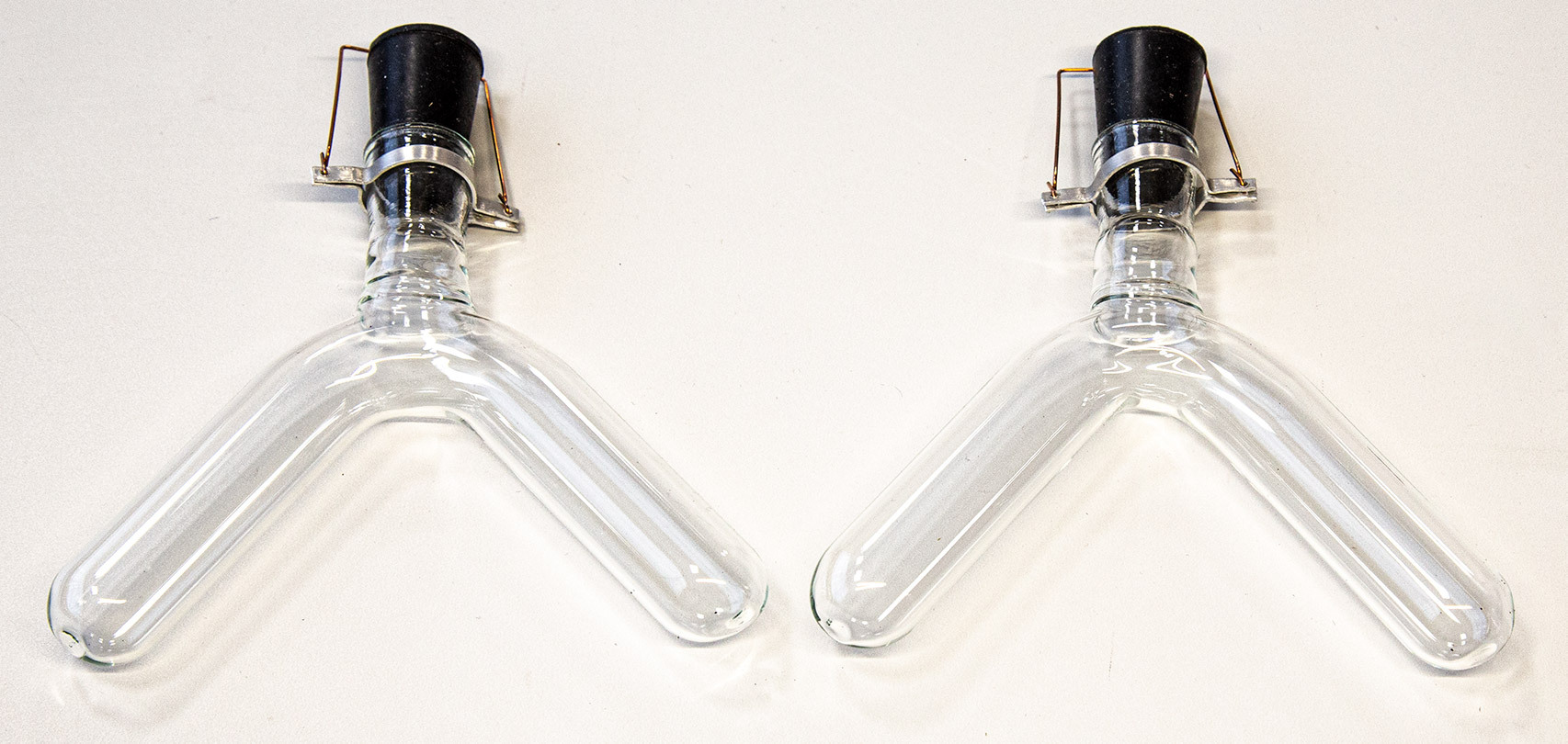 Прибор представляет собой 2 сосуда Ландольта с металлическими хомутами и дужками с вставленными резиновыми пробками.