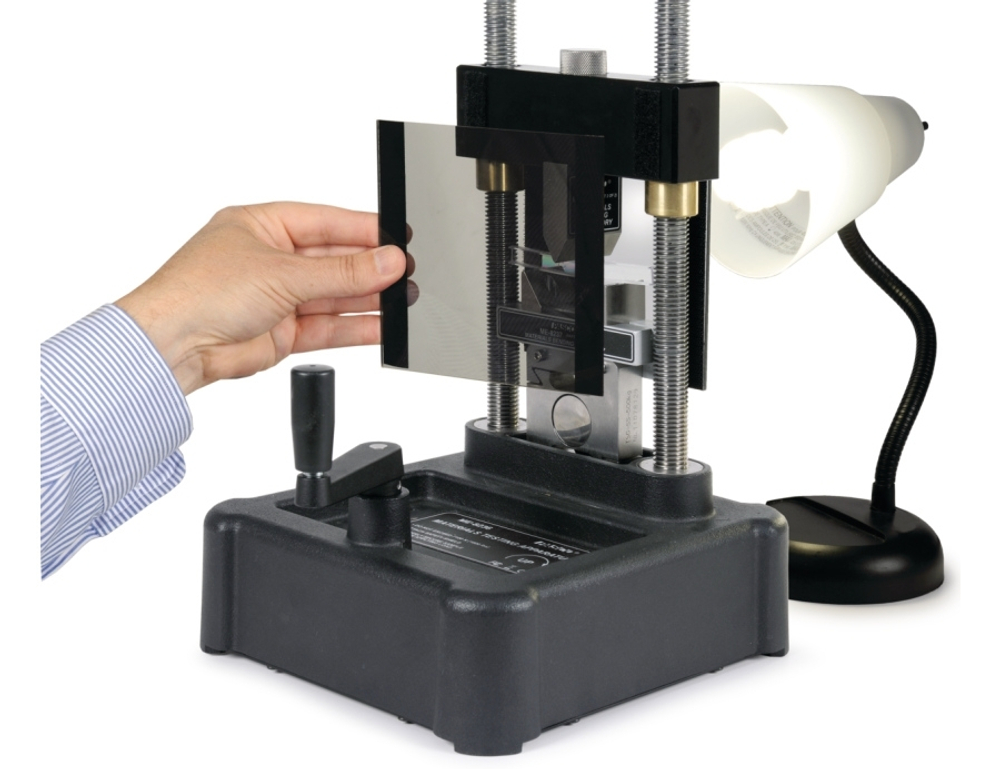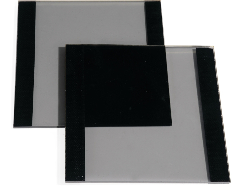 Этот набор состоит из двух прямоугольных поляризованных светофильтров, прикрепляемых при помощи "липучки" к нагрузочной траверсе устройства для исследования сопротивления материалов.