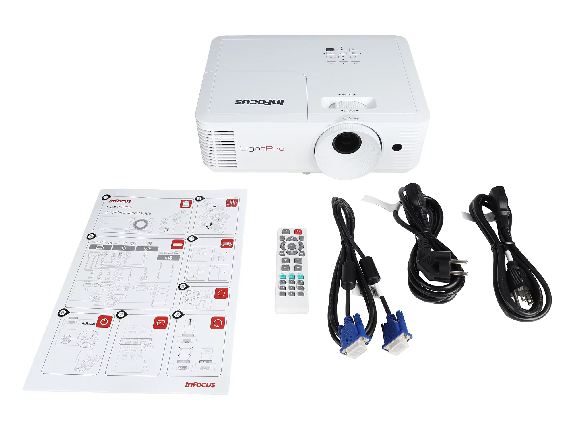 - Комплектация: Проектор, пульт ДУ (без батареек), кабель питания (1,8 м), кабель VGA (1,8 м)
