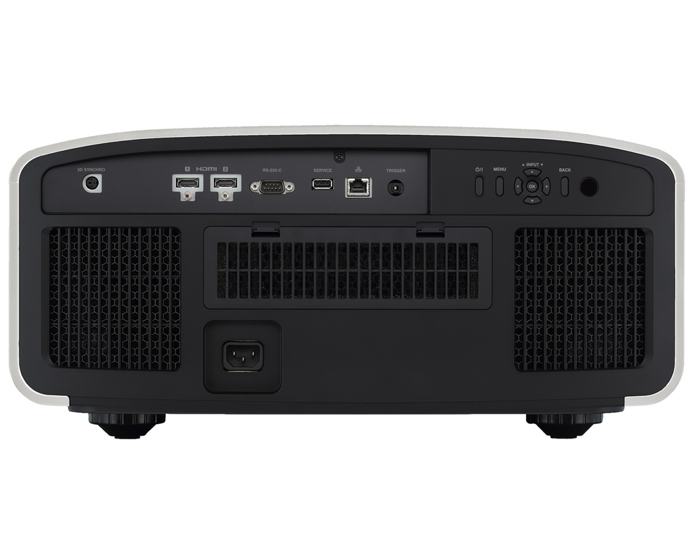 Проектор построен на основе фирменной технологии D-ILA от JVC, трех 0.69” D-ILA матриц с собственным разрешением 4K и оснащен высококачественным цельностеклянным объективом из 17 элементов и 15 групп диаметром 65 мм, позволяющим проецировать изображения высокого разрешения по всей площади экрана с яркостью до 1900 люмен.