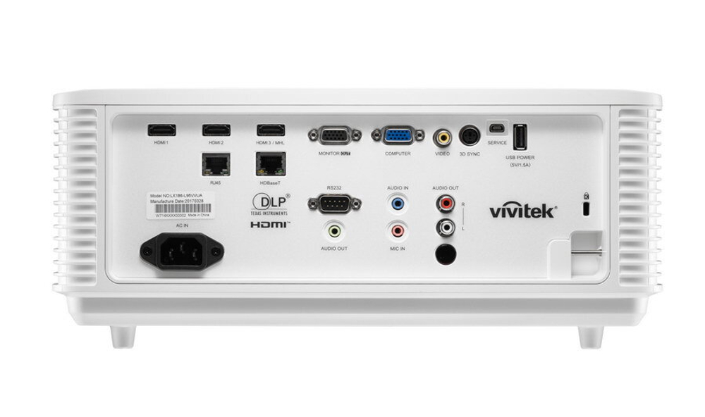 Порты I/O VGA-In (15pin D-Sub) (1x), HDMI (3x), Composite Video (1x), Audio-In (RCA) (1x), Audio-In (Mini-Jack) (1x), VGA-Out (15pin D-Sub) (1x), RJ45 (2x LAN / HDBaseT), IP Telnet Capable Over RJ-45, RS-232 (1x), 3D-Sync (1x 3D Sync out), USB A (1x 5V 1.5A), USB miniB (Service), Microphone (Mini-Jack) (1x), Remote Jack(wire remote)