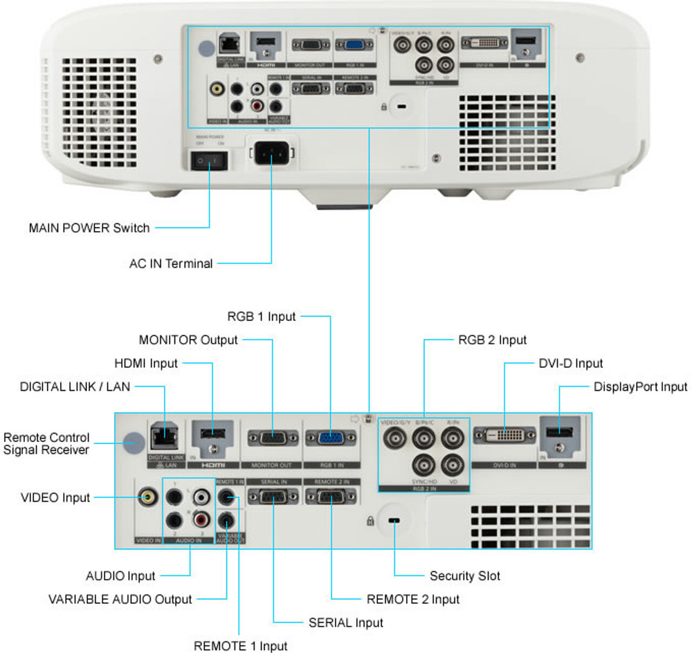 Последовательный порт (RS-232C) может эмулировать предыдущие модели Panasonic, что при замене старого проектора новым позволяет использовать уже имеющуюся систему управления. HDMI и DVI-D входы и возможности дистанционного управления проектором позволяют использовать его для решения широкого диапазона задач, включая установку в кинотеатрах и кинозалах, учебных аудиториях и классах, музеях и т.д.