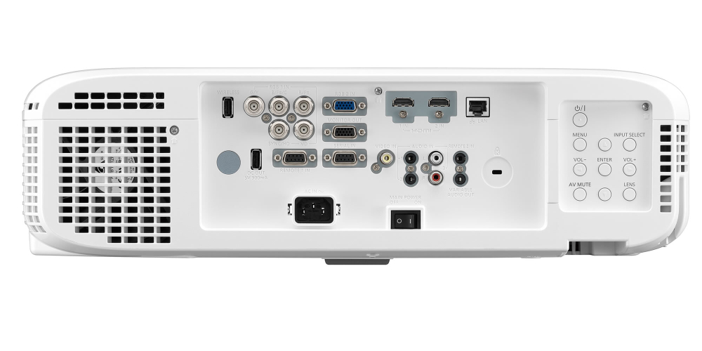 Проектор защищен от попадания пыли благодаря конструкции с односторонним воздушным потоком, герметичному оптическому блоку, воздухозаборному отверстию и фильтру Eco.