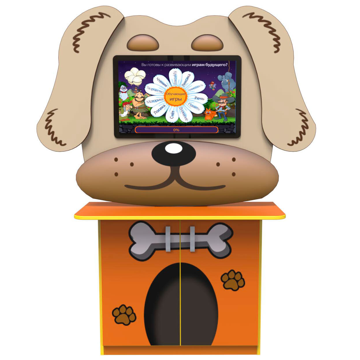 За работу интерактивного оборудования отвечает производительный компьютер, а также 25 дюймовый сенсорный монитор, поддерживающий до 10 одновременных касаний. За звук отвечают вмонтированные в корпус колонки, мощностью 10 Вт, позволяющие комфортно работать в помещениях малой и средней площади.