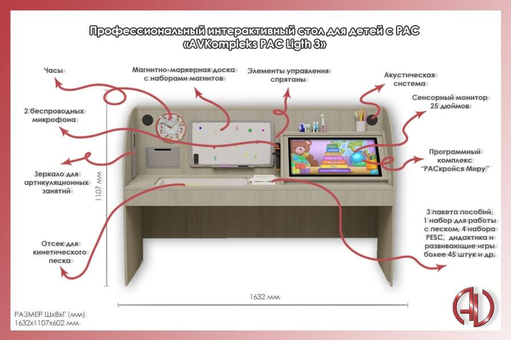 PROTECT KIDS - безопасная компьютерная среда;ЛогоСтрана - 42 упражнения (с функцией субтитров для слабослышащих детей);РАСкройся Миру - 40 игр с заданиями (с функцией субтитров для слабослышащих детей, функция регулировки насыщенности цвета);Электронно-методический комплекс программ для специалиста- дефектолога для работы с детьми с РАС, состоит из не менее чем 4 блоков, которые включают: