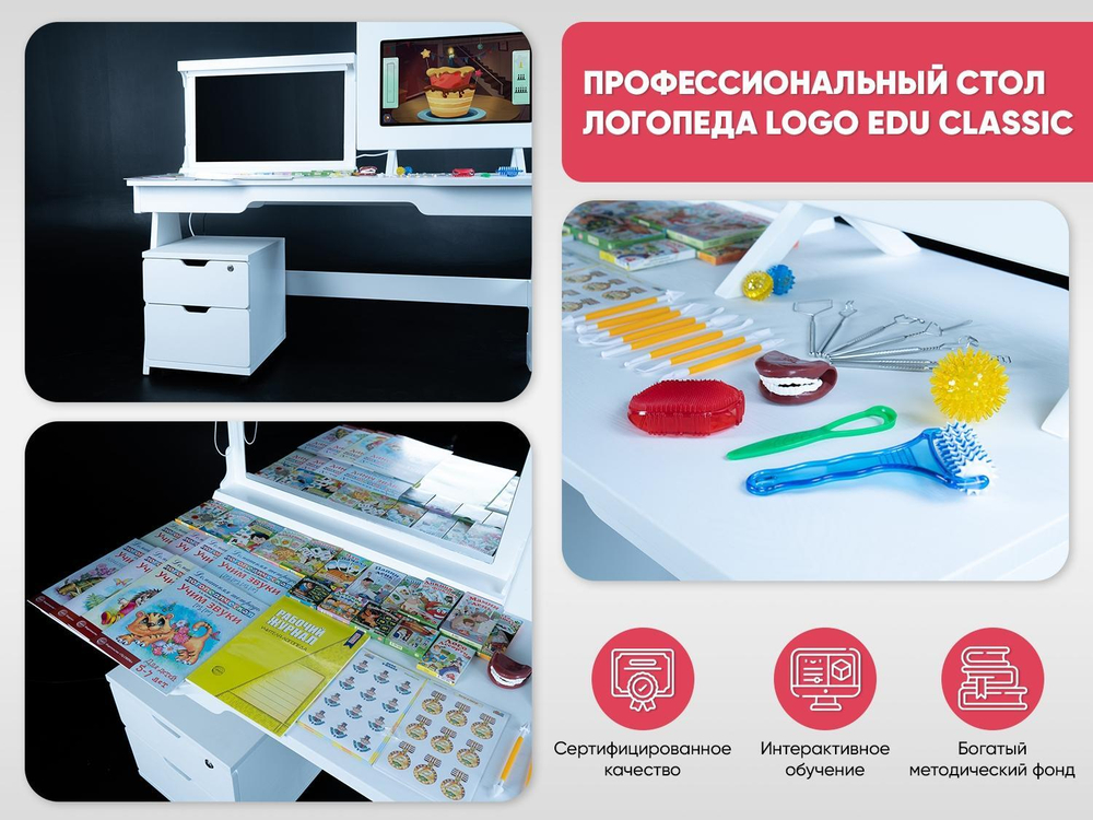 Профессиональный стол логопеда Logo EDU CLASSIC — отличное решение для оснащения коррекционных кабинетов в школе и детском саду: