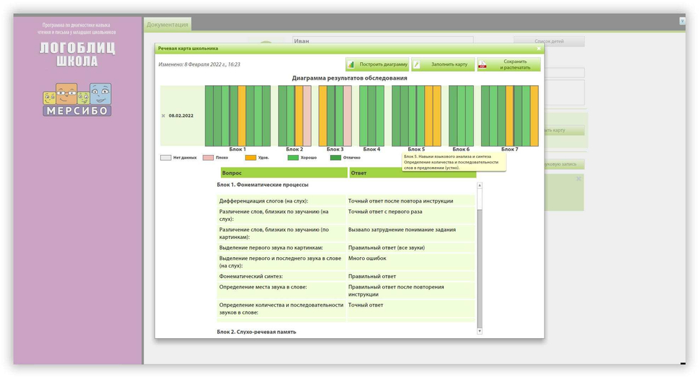 Программа для обследования навыка чтения и письма у младших школьников "ЛогоБлиц: Школа"