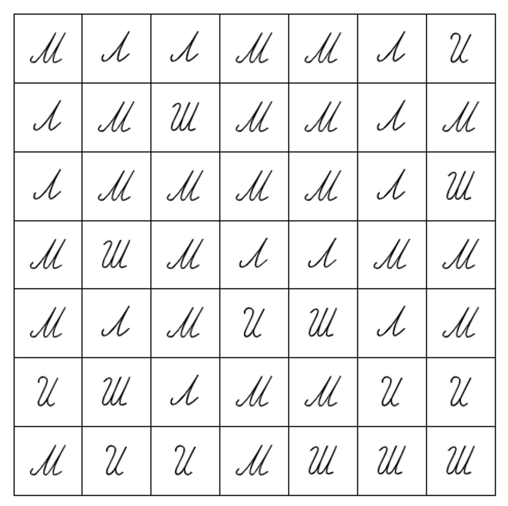 - Собираем нужные ингредиенты: выбираем элементы (буквы, цифры и т.д.), которые будут входить в таблицу.