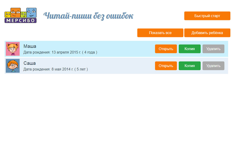 Программа Мерсибо: Читай-пиши без ошибок разработана для того, чтобы помочь детям легко и быстро преодолеть трудности в чтении, речи и правописании. Программа включает ряд заданий, упражнений и интерактивных тренингов, затрагивающие темы: правописания, работа со словарём, улучшение почерка, развитие слухового и зрительного внимания, проработка различных упражнений (например, гласная без ударения) и многое другое.
