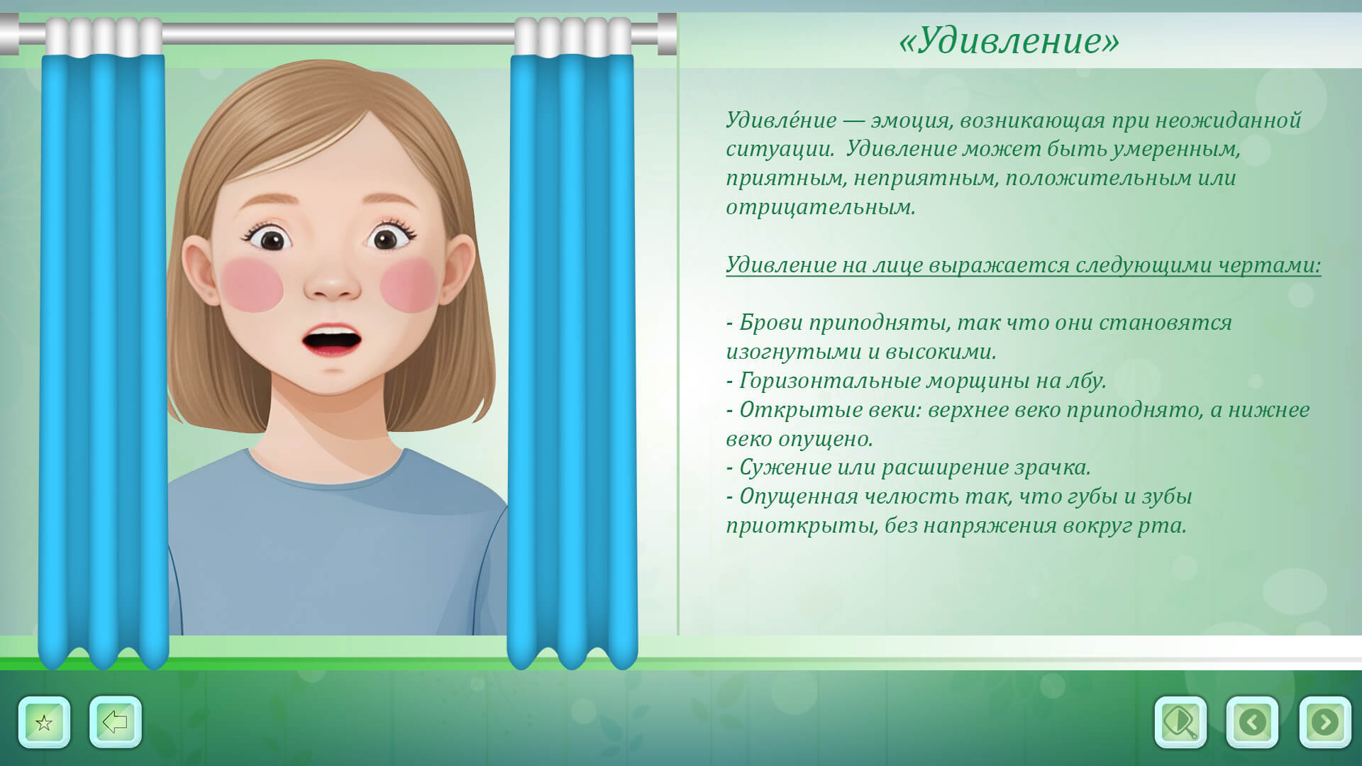 Эмоции– 18 упражнений на развитие умения понимать эмоции окружающих и выражать свои чувства невербальными средствами (предусмотрена функция разделения экрана для работы в режиме логозеркала).