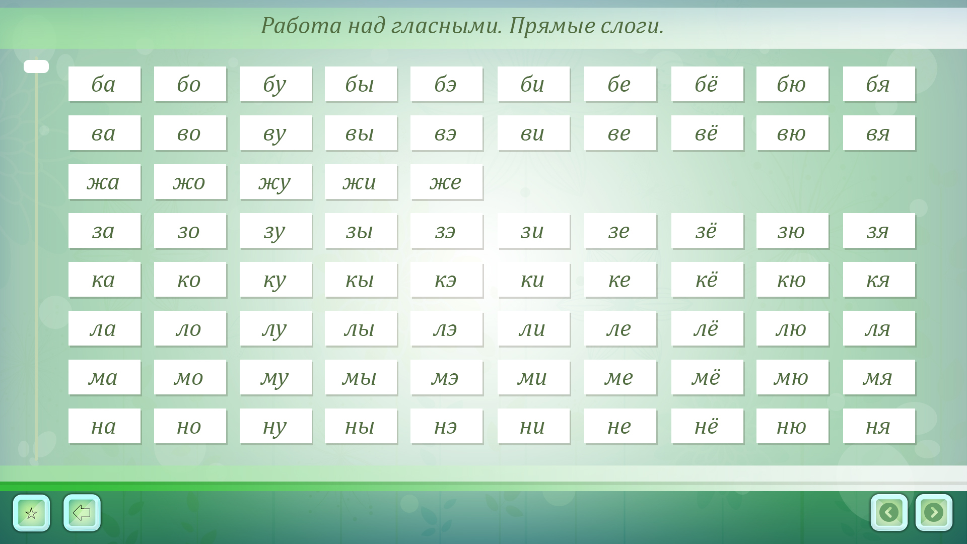 2 раздела (5 упражнений), направленных на работу со слогами, словами, согласными.