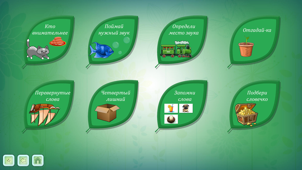 Программа включает в себя упражнения и игры, которые разделены на 4 основных блока: