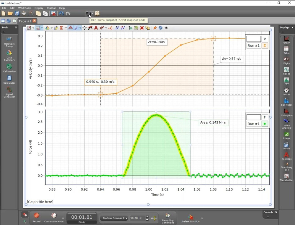 Создание и настройка страницы для проведения эксперимента происходит быстро и легко. Для каждой страницы можно установить свою частоту дискретизации и набор необходимых инструментов. Собранные данные синхронизируются с записанным видео, которое может быть воспроизведено медленно, нормально или быстро. Простые в использовании таблицы позволяют легко анализировать данные. А функция Отмена/Повтор позволяет легко опробовать разные варианты и условия проведения эксперимента.