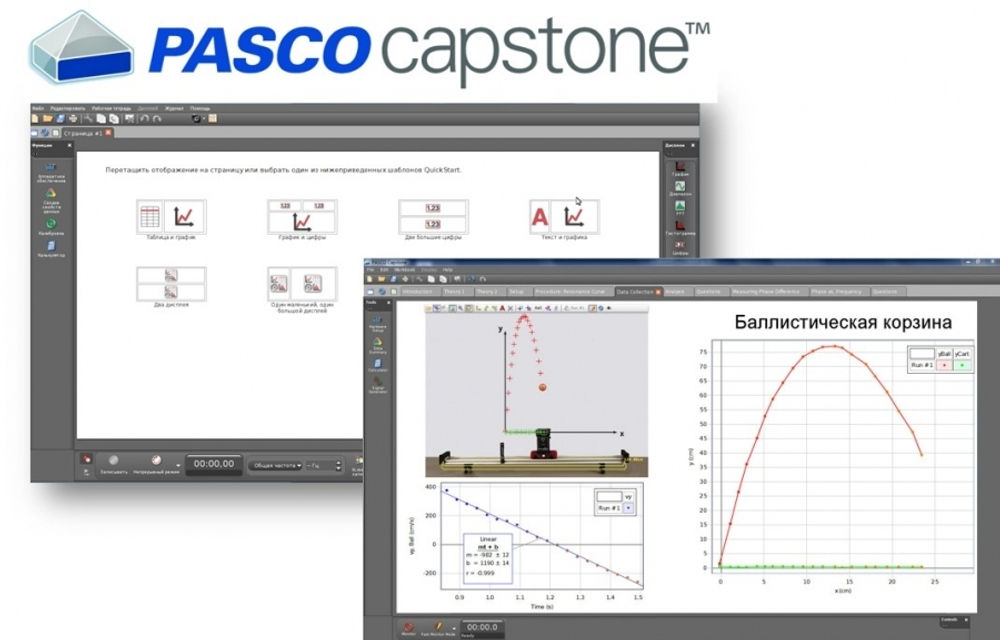 PASCO Capstone - программное обеспечение для сбора, отображения и анализа данных с цифровых и аналоговых датчиков PASCO.