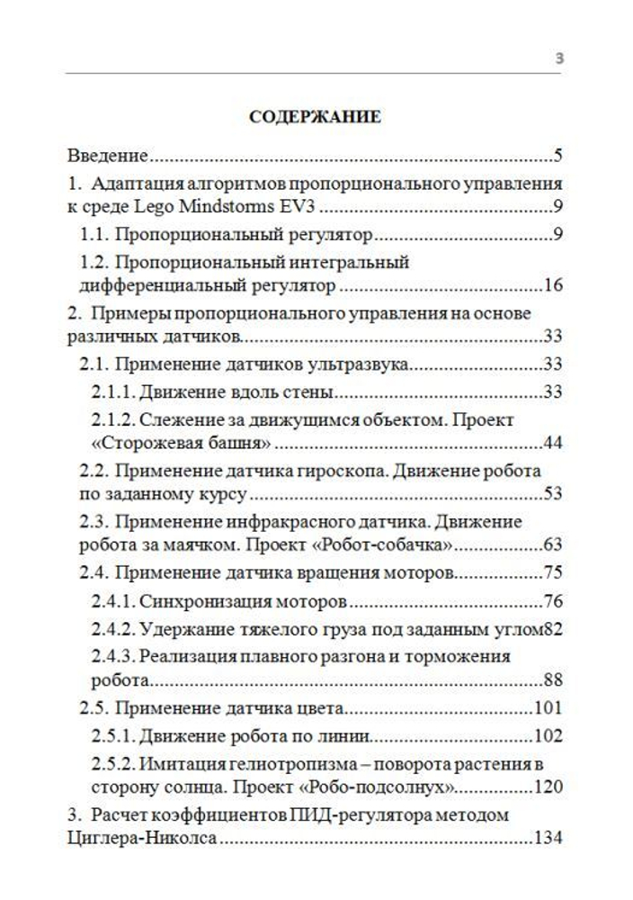 Отдельная глава посвящена реализации в среде Lego Mindstorms EV3 методики Циглера-Николса, позволяющей теоретически рассчитать оптимальные параметры управления, планировать и реализовывать научный эксперимент, позволяя раскрыть научный потенциал образовательной робототехники.
