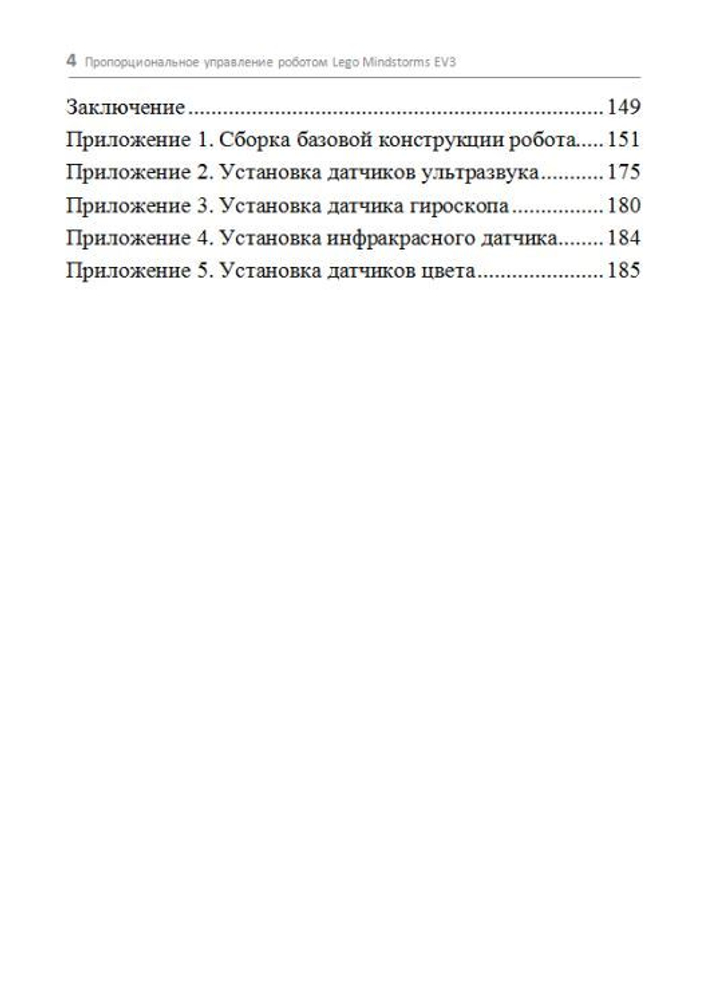 В книге рассмотрено применение алгоритмов пропорционального управления роботом LEGO Mindstorms EV3 с использованием различных датчиков: движение робота вдоль стены, слежение за движущимся предметом, следование за маячком, движение по линии и по заданному курсу, удержание тяжелого груза в требуемом положении, реализация плавного разгона и торможения, имитация эффекта гелиотропизма.